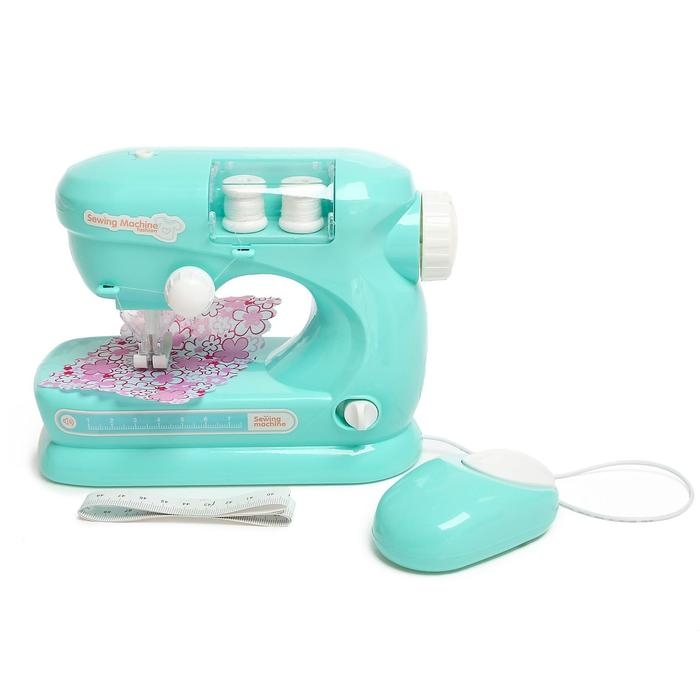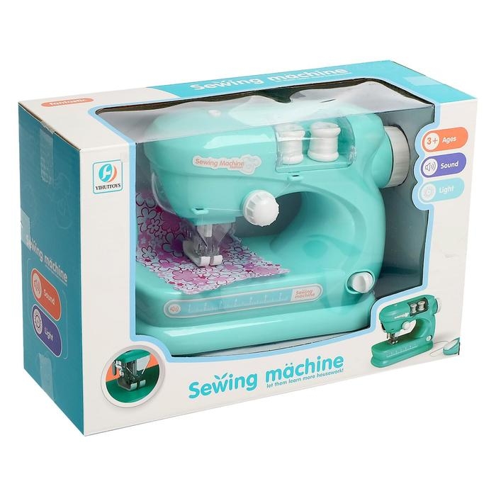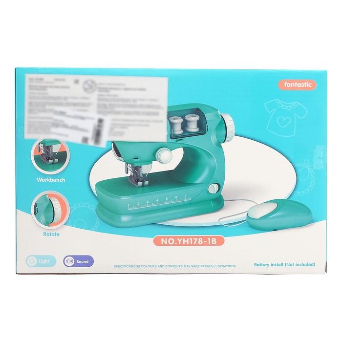 Размер швейной машинки: 18 × 8 × 14 см. Машинка имеет световые эффекты. Для работы понадобятся 3 батарейки типоразмера AA, в комплект не входят.