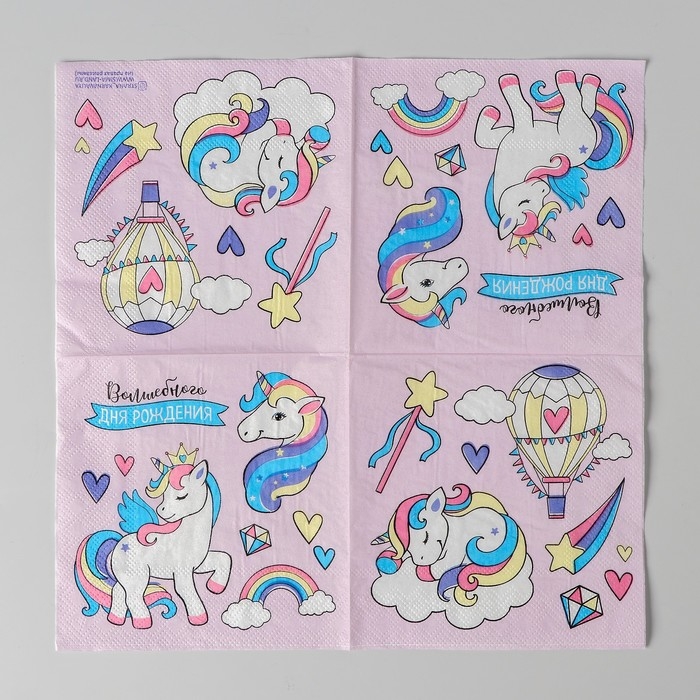Cалфетки бумажные «Волшебного дня рождения», 25х25см, набор 20 шт.