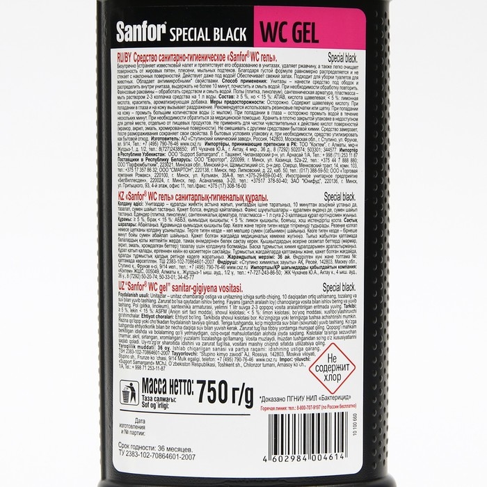 Cанитарно-гигиеническое cредство Sanfor WС гель, speсial black, 750 мл