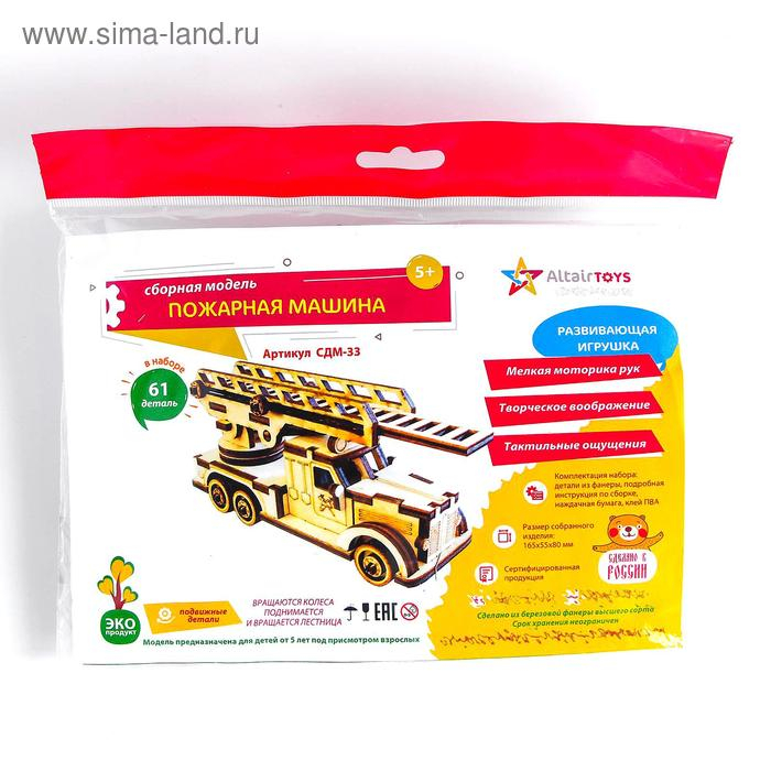 Сборная модель пожарной машины — отличный вариант досуга, который разовьёт у ребёнка множество навыков. Склеивайте детали между собой согласно инструкции. При желании раскрасьте игрушку и покройте лаком. После сборки и высыхания клея моделью можно играть.