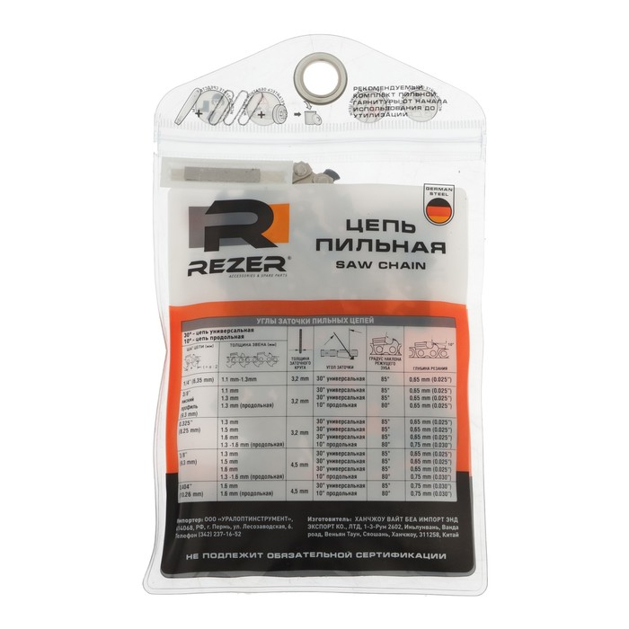 Цепь для бензопилы Rezer PS-9-1.3-56, 16", 3/8", 1.3 мм, 56 звеньев, Partner/Champion137/142