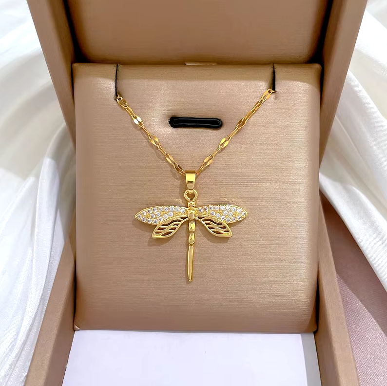 Цепочка DIEYURO из нержавеющей стали 316L с подвеской в виде стрекозы для женщин