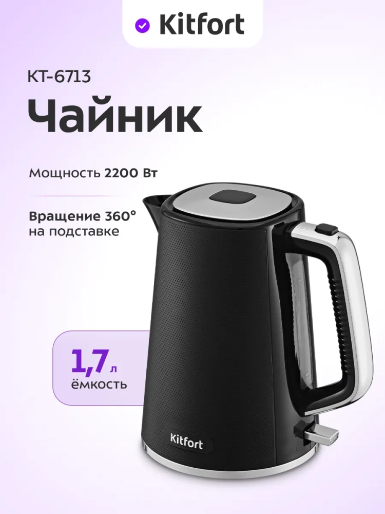 Электрический чайник Kitfort КТ-6713 предназначен для кипячения воды дома, в офисе, на даче.