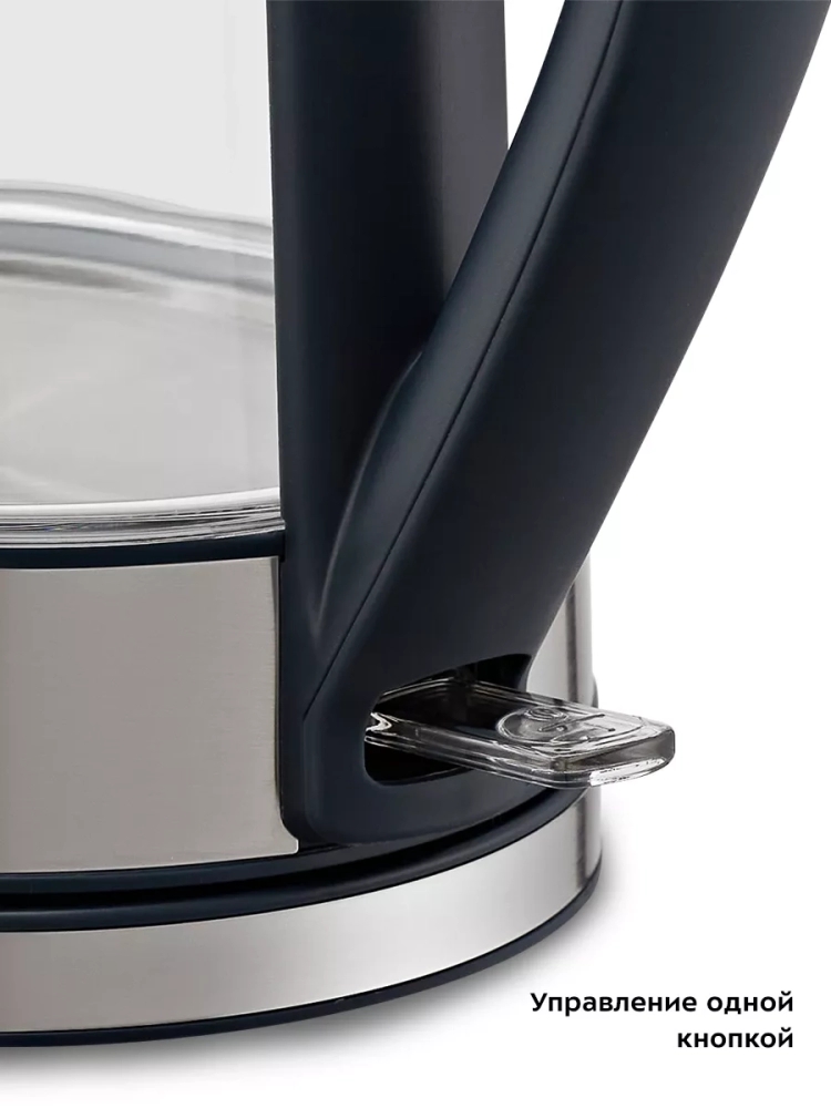 Корпус чайника выполнен из сочетания стекла, нержавеющей стали и пластика, а крышка — из сочетания нержавеющей стали и пластика. Мерная шкала находится на внешней стороне корпуса. Ручка чайника пластиковая, не нагревается и удобно лежит в руке.
