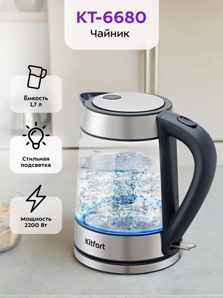 Электрический чайник Kitfort КТ-6680 предназначен для кипячения воды дома, в офисе, на даче.