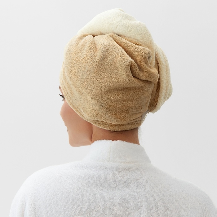 Чалма для сушки волос Этель «Двухцветная», цв.бежевый/коричневый, 65*25 см, 100% п/э