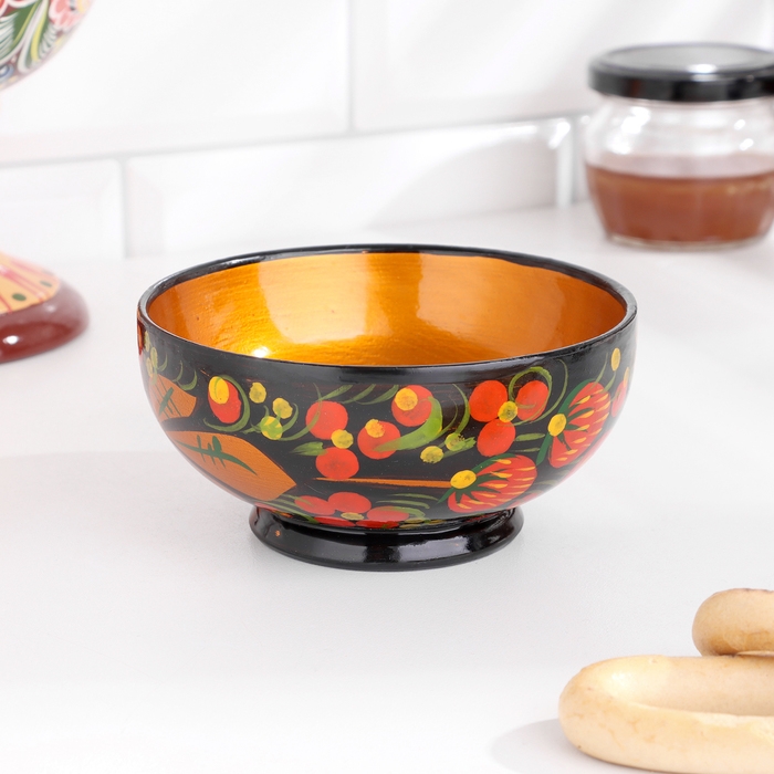 Традиционные элементы Хохломы — ягоды рябины и земляники, цветы и листья, птицы, рыбы и звери.