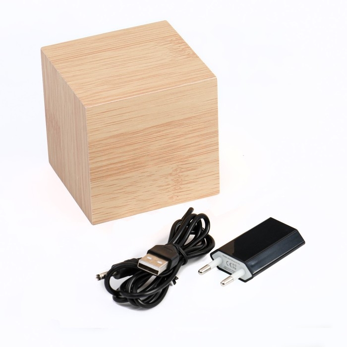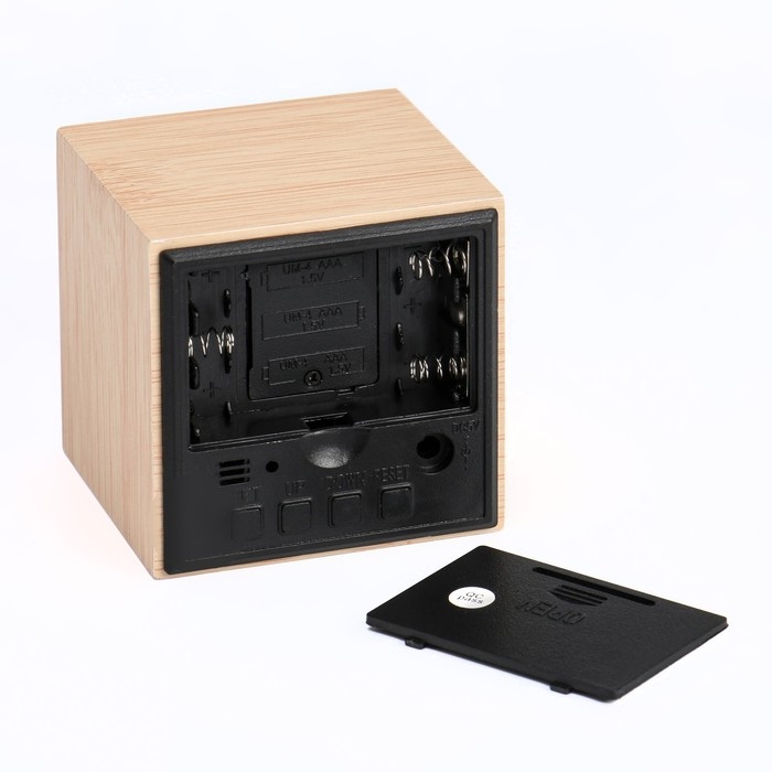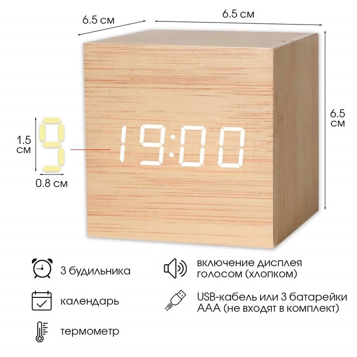 Часы - будильник электронные "Цифра" настольные с термометром, деревянные, 6.5 см, ААА, USB