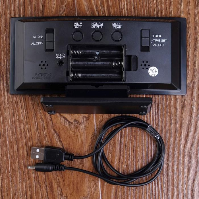 Часы -будильник электронные настольные с термометром, 15 х 5 см, USB