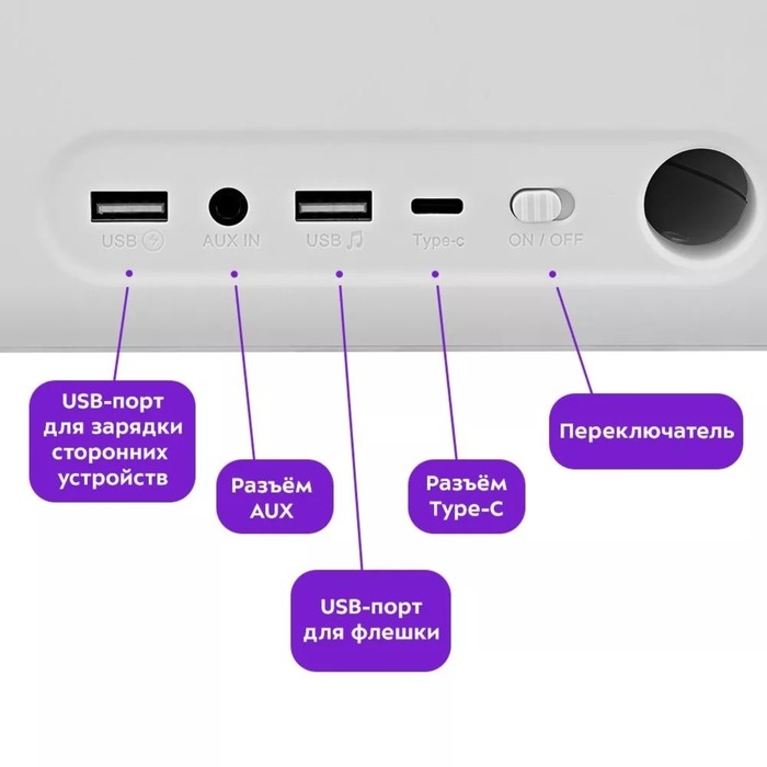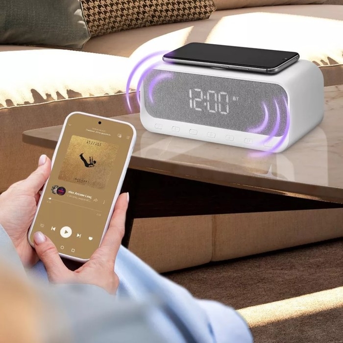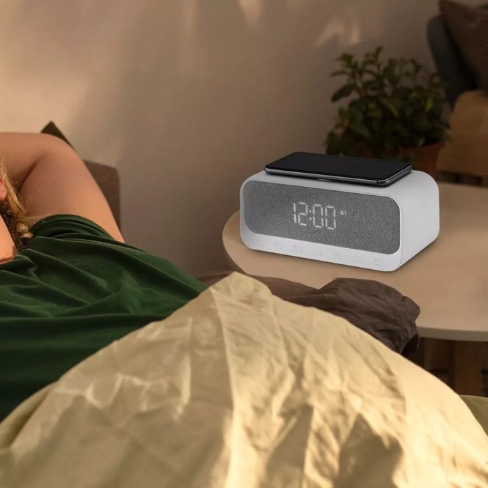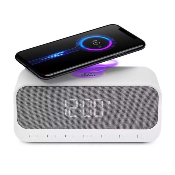 Часы-будильник Kitfort КТ-3702, электронные, беспроводная зарядка, колонка, от АКБ, белые