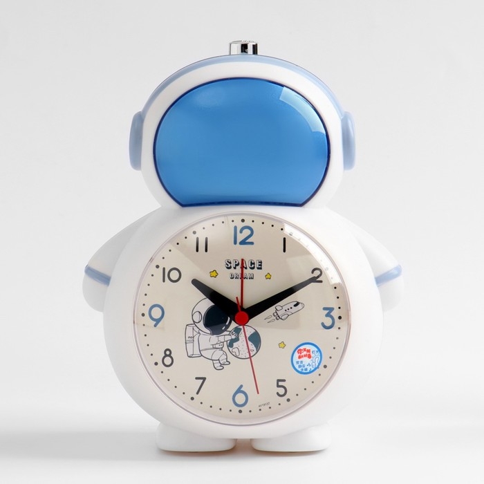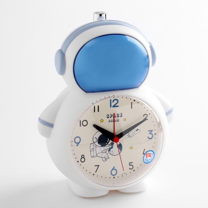 Часы - будильник настольные "Космонавт" детские, плавный ход, d-10 см, 15 х 18.5 см, 2АА