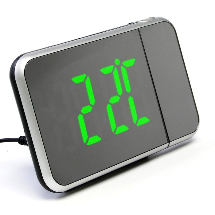 Часы электронные настольные, будильник с проекцией, календарем, USB, зеленая индикация