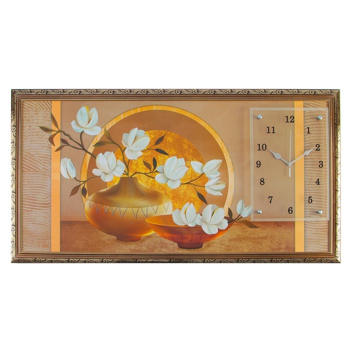 Часы-картина настенные, интерьерные "Две вазы с цветами", 50 х 100 см, на холсте, бесшумные