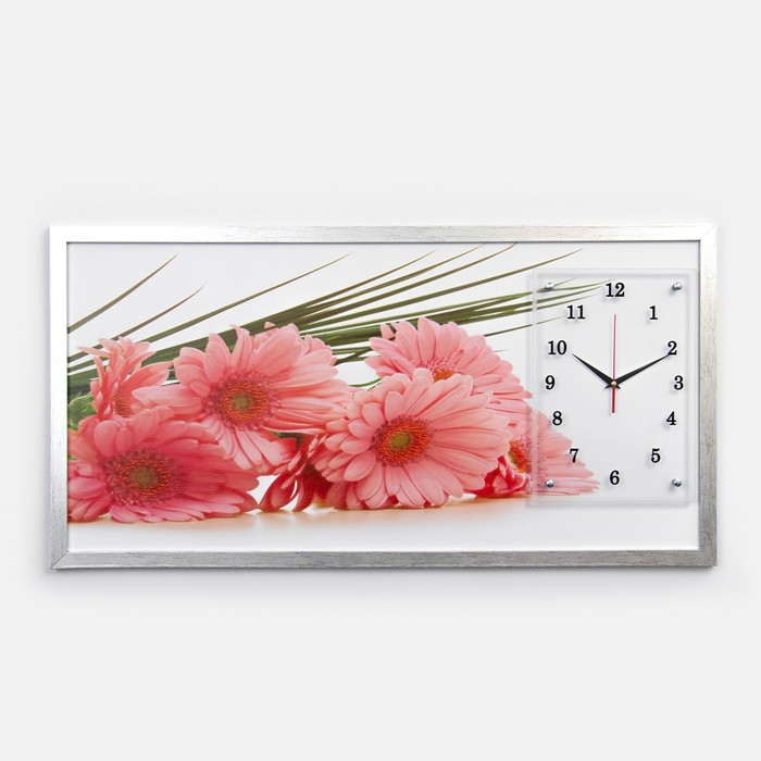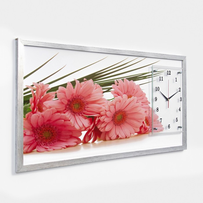Часы-картина настенные, интерьерные "Герберы", 50 х 100 см, на холсте, бесшумные