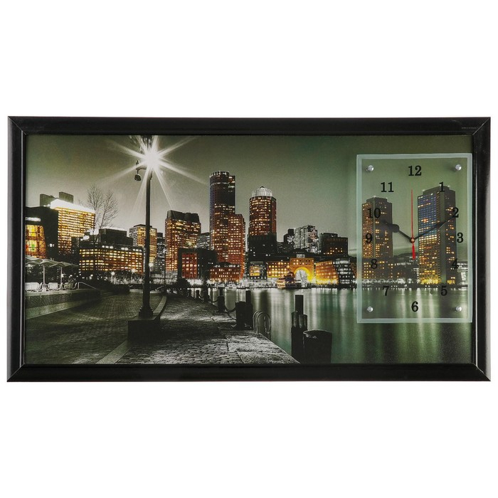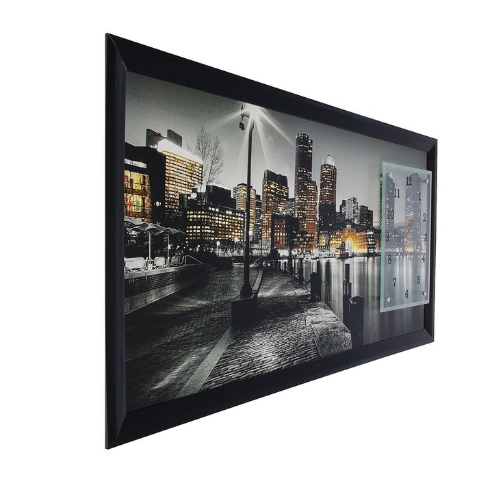 Часы-картина настенные, интерьерные "Ночной Бостон", 50 х 100 см, на холсте, бесшумные