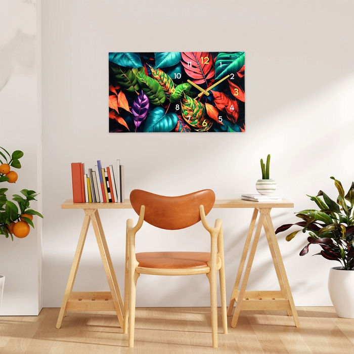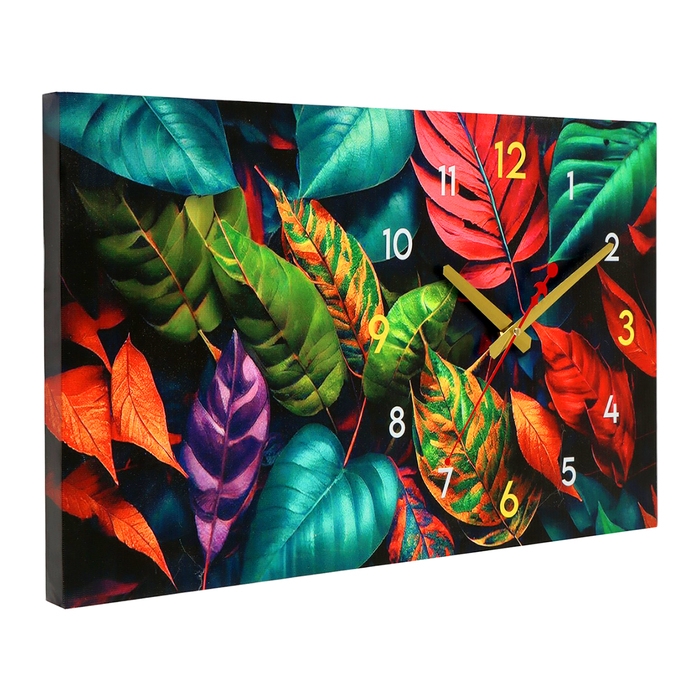 Часы-картина настенные интерьерные "Разноцветные листья", бесшумные, 35 х 60 см