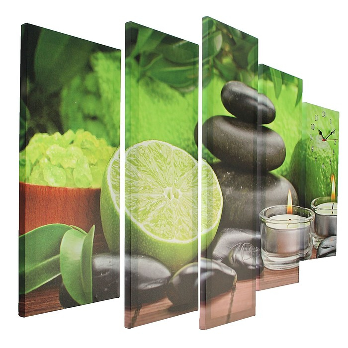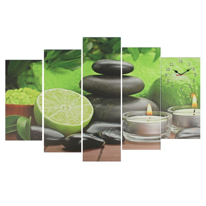 Часы-картина настенные, модульные "Лайм, свечи и камень", бесшумные, 80 х 140 см