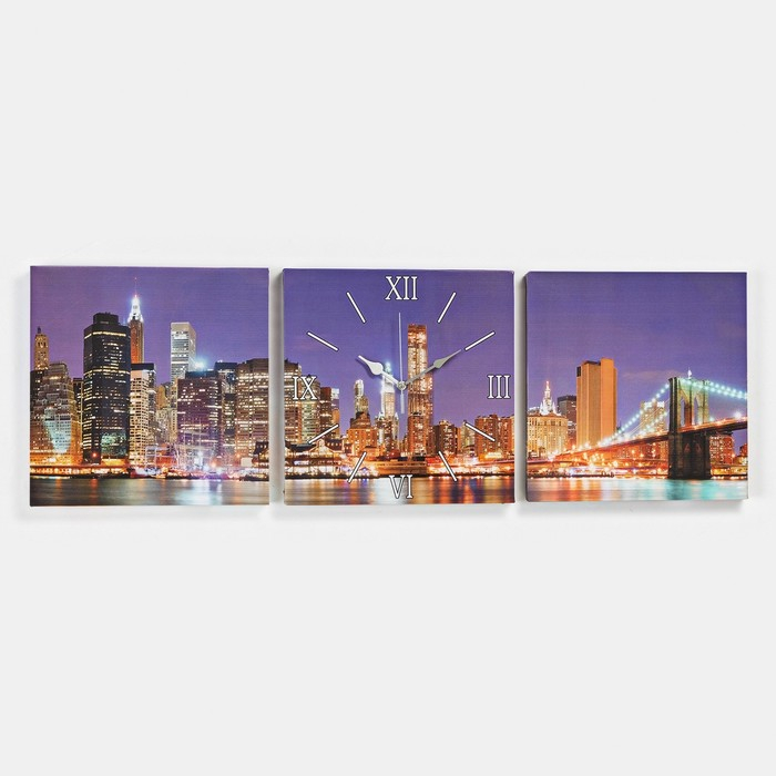 Часы-картина настенные, модульные "Огни большого города", бесшумные, 35 х 110 см, триптих