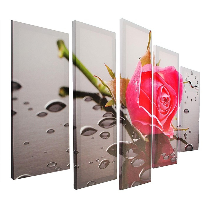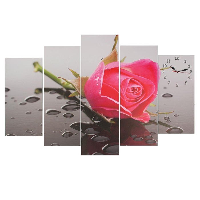 Часы-картина настенные, модульные "Розовая роза", бесшумные, 80 х 140 см, микс