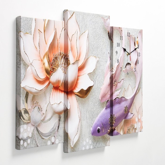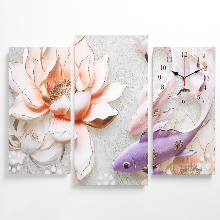 Часы-картина настенные, модульные, "Рыбки", 60 х 80
