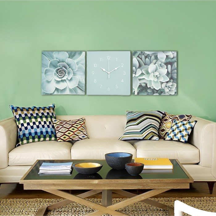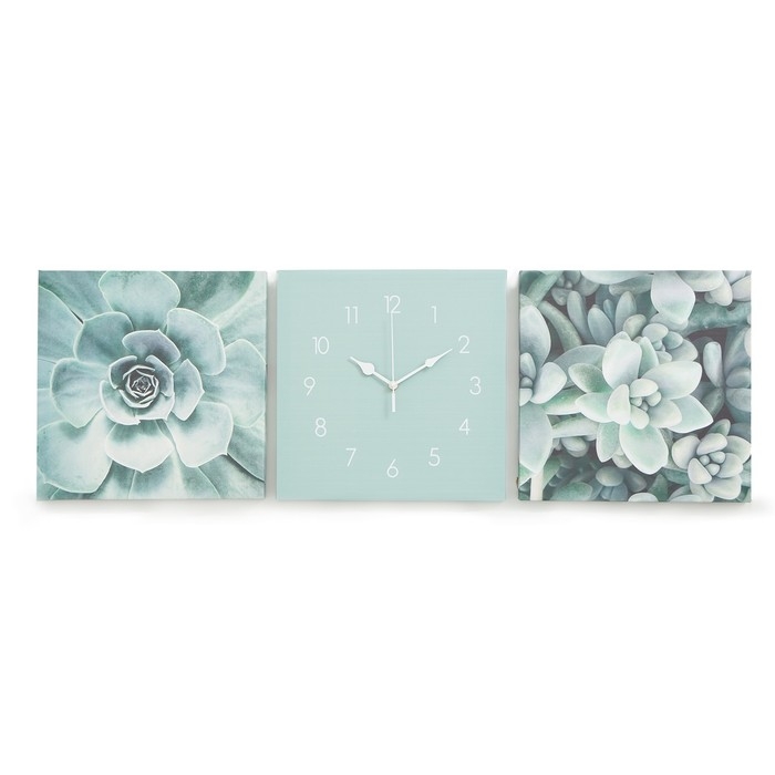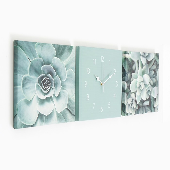Часы-картина настенные, модульные, "Суккуленты", бесшумные, 35 х 110 см, триптих