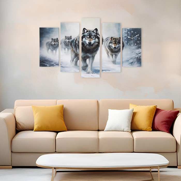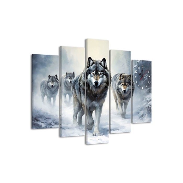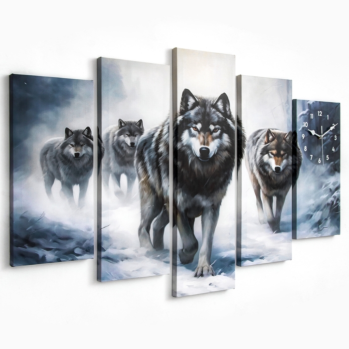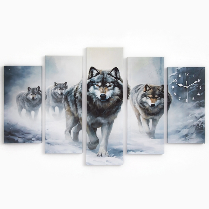 Часы-картина настенные модульные "Волки", бесшумные, 80 х 140 см
