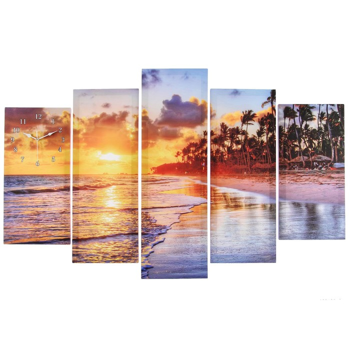 Часы-картина настенные, модульные "Закат на пляже", бесшумные, 80 х 140 см