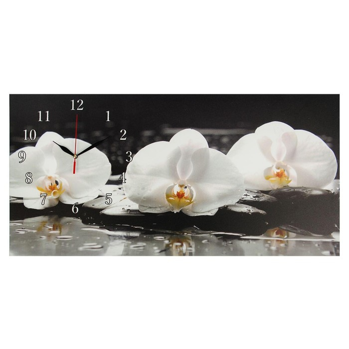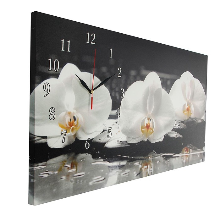 Часы-картина настенные, на холсте, интерьерные, бесшумные "Белые орхидеи", 40 х 76 см