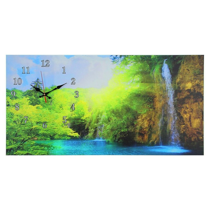 Часы-картина настенные, на холсте, интерьерные, бесшумные "Лесной водопад", 40 х 76 см
