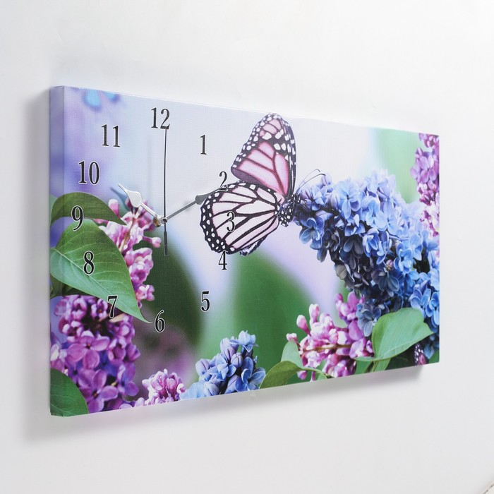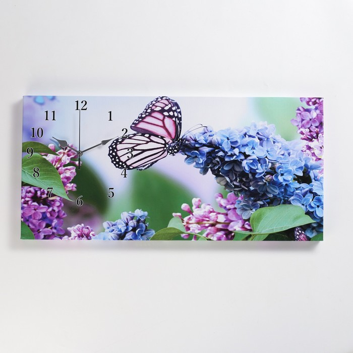 Часы-картина настенные, на холсте, интерьерные "Сирень и бабочка", бесшумные, 40 х 76 см