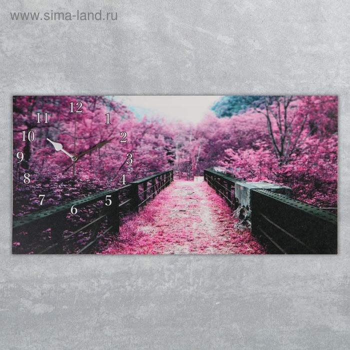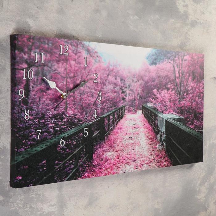 Часы-картина настенные, на холсте, серия: Город, "Сиреневая листва на мосту" 40х76 см