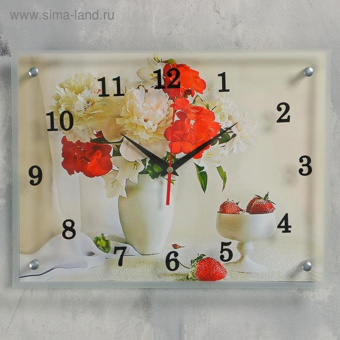 Часы-картина настенные, серия: Цветы, "Цветы в вазе", 30х40 см