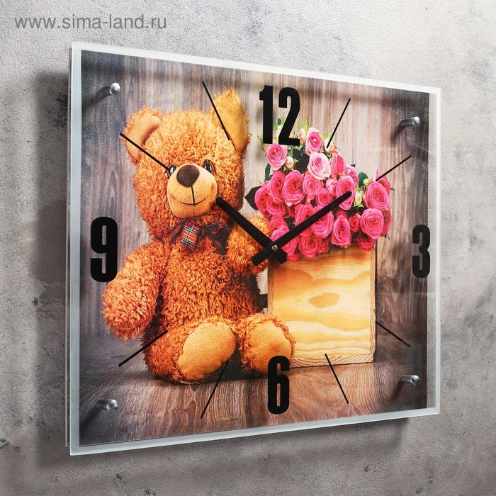 Часы-картина настенные, серия: Цветы, "Плюшевый мишка", 40х50 см