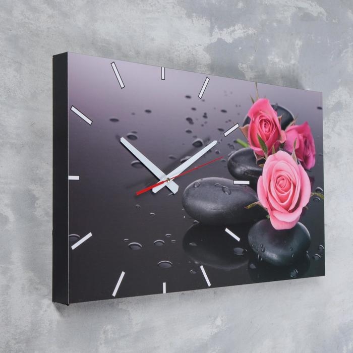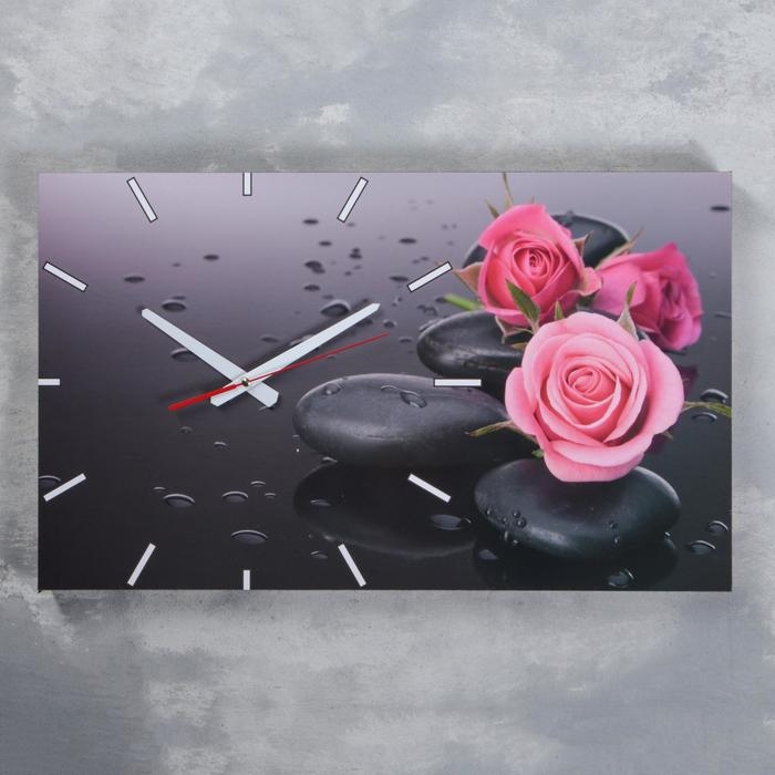 Часы-картина настенные, серия: Цветы, "Розы на серых камнях", 61х37 см, микс