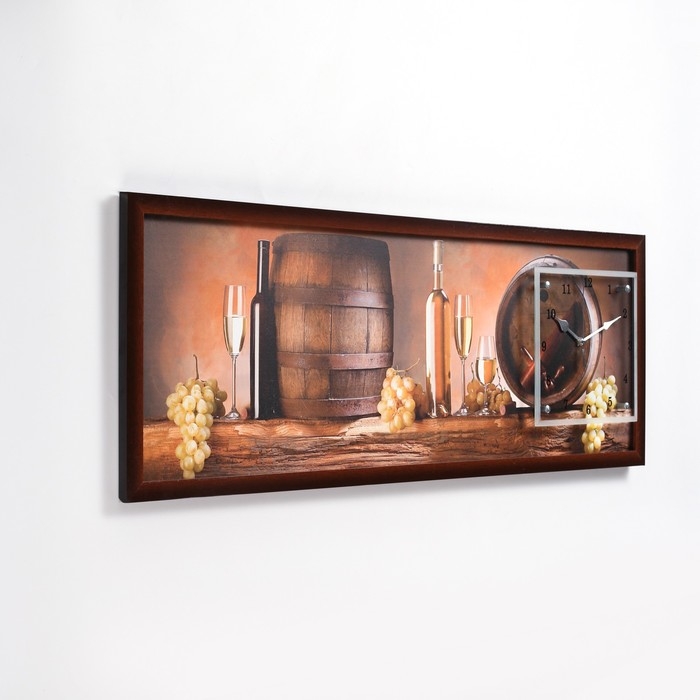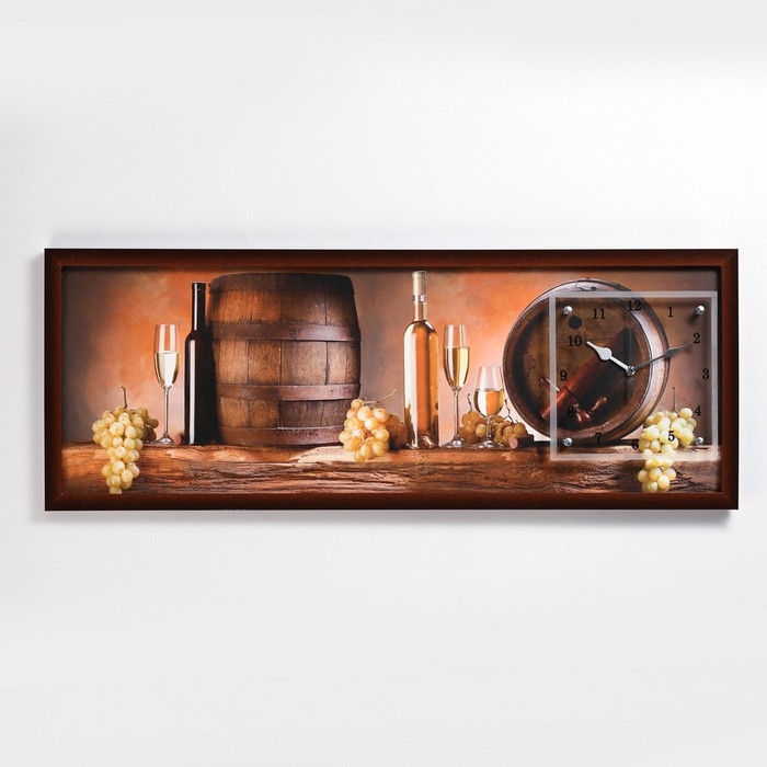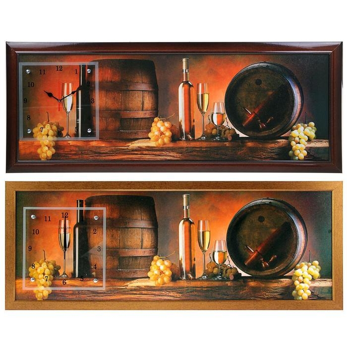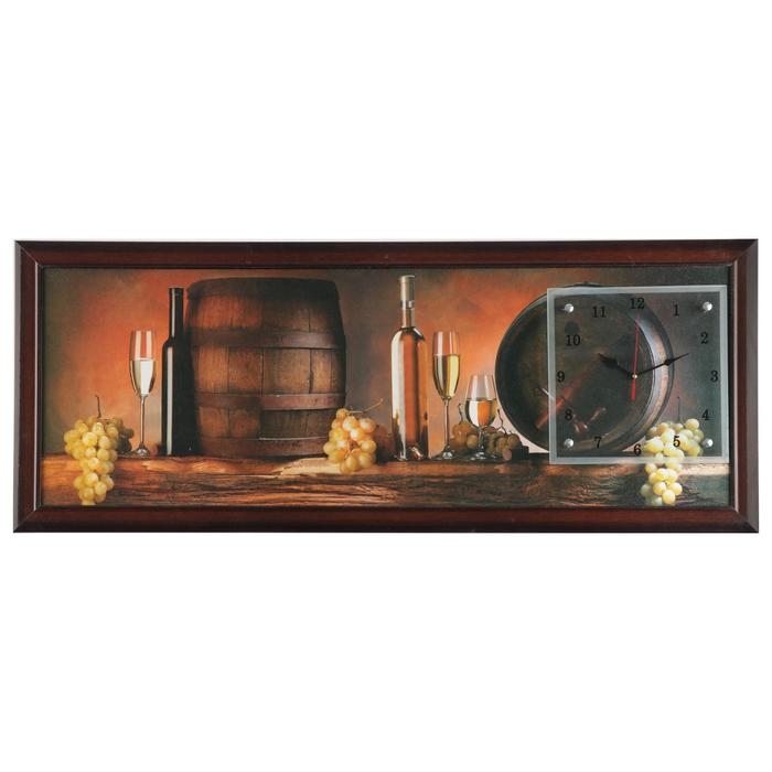 Часы-картина настенные, серия: Интерьер, "Винные бочки", 35х100 см, микс