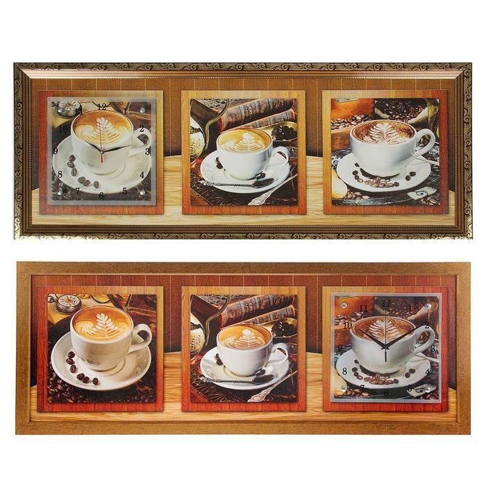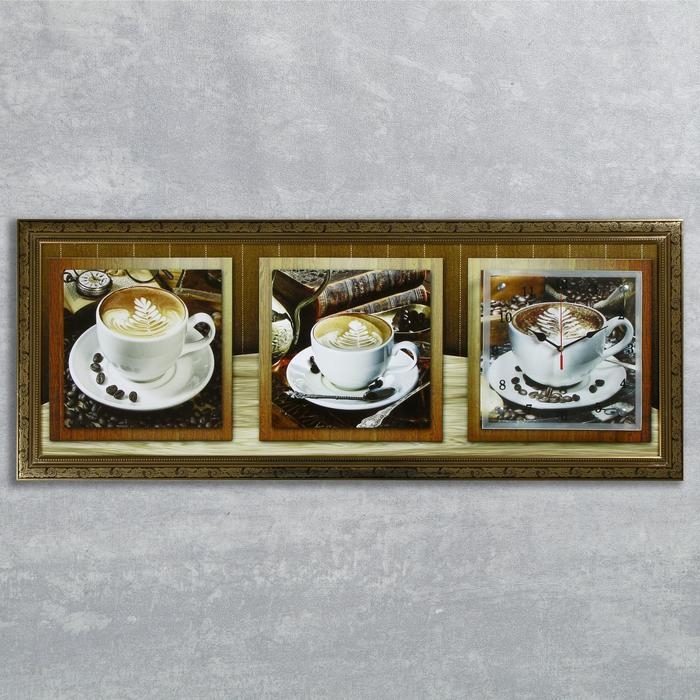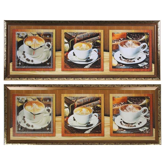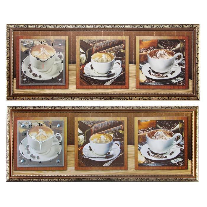Часы-картина настенные, серия: Кухня, "Кофейная церемония", 35 х 100 см