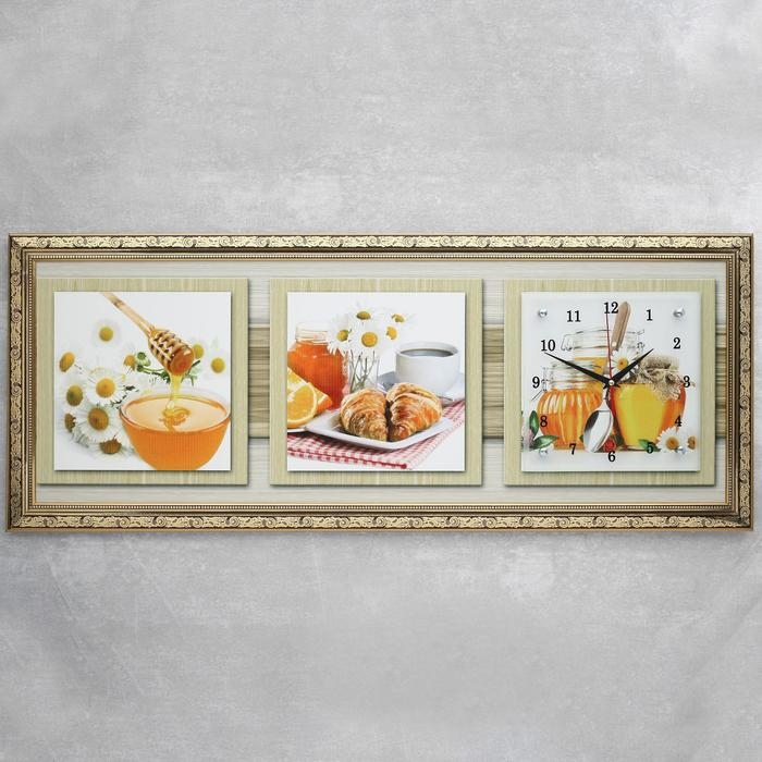 Часы-картина настенные, серия: Кухня, "Медовая фантазия", 35 х 100 см