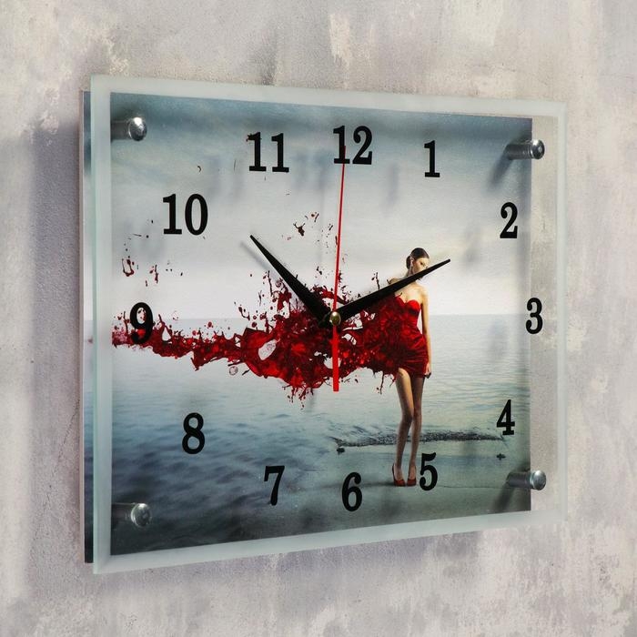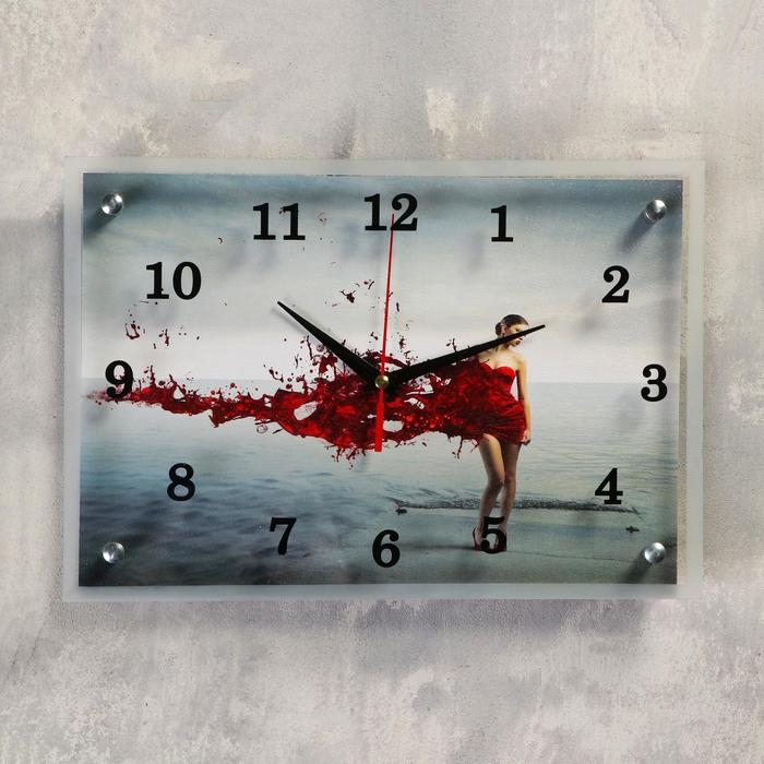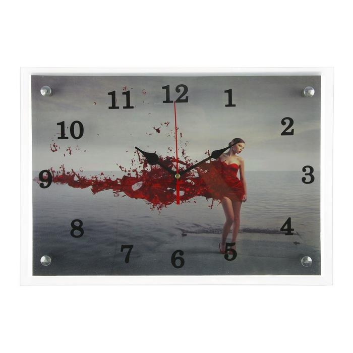 Часы-картина настенные, серия: Люди, "Девушка в красном" 25х35 см