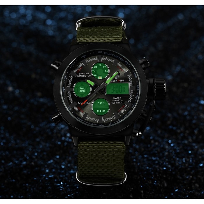 Часы наручные электронные, d-4.4 см, с будильником, календарем, подсветкой, 1 АТМ