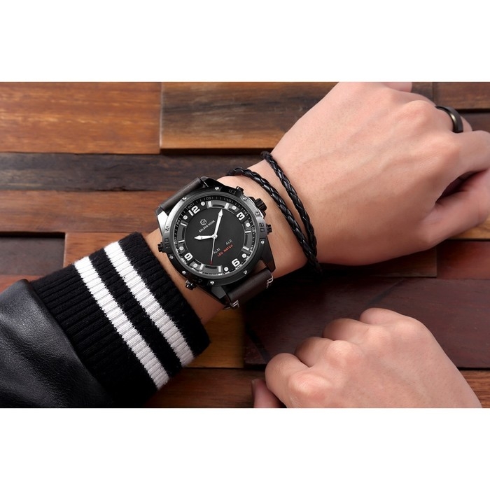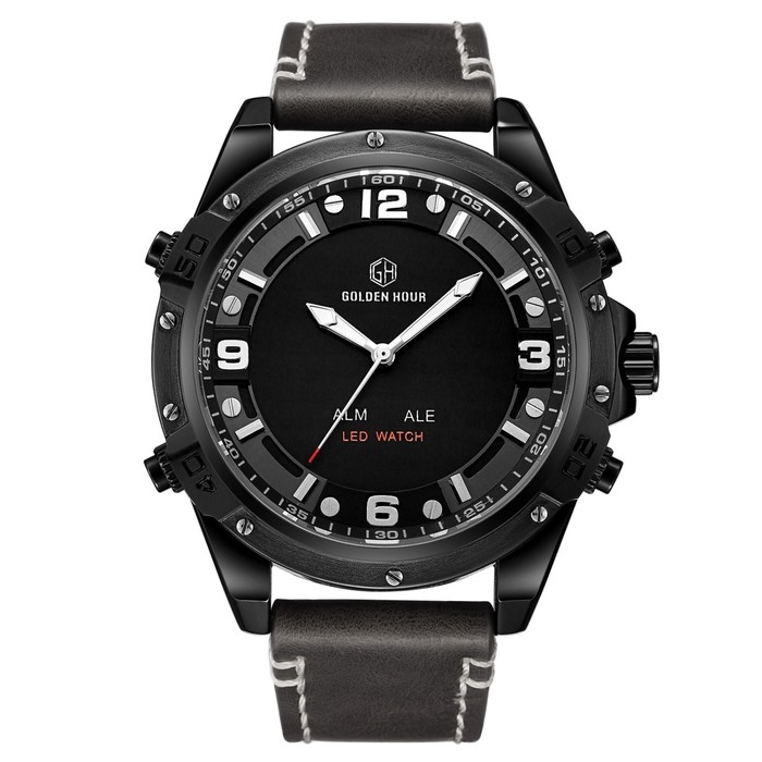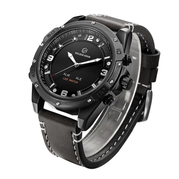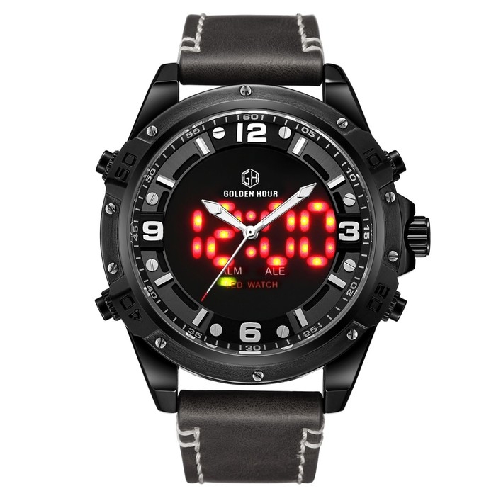 Часы наручные электронные, d-5 см, с будильником, календарем, подсветкой, 1 АТМ, черные