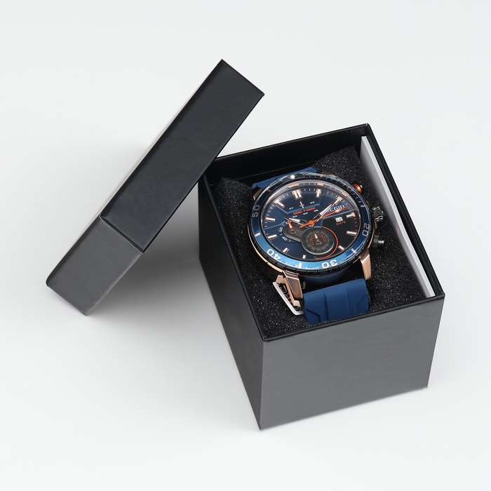 Часы наручные мужские, d-4.6 см, с хронографом, 3 АТМ, светящиеся, синие