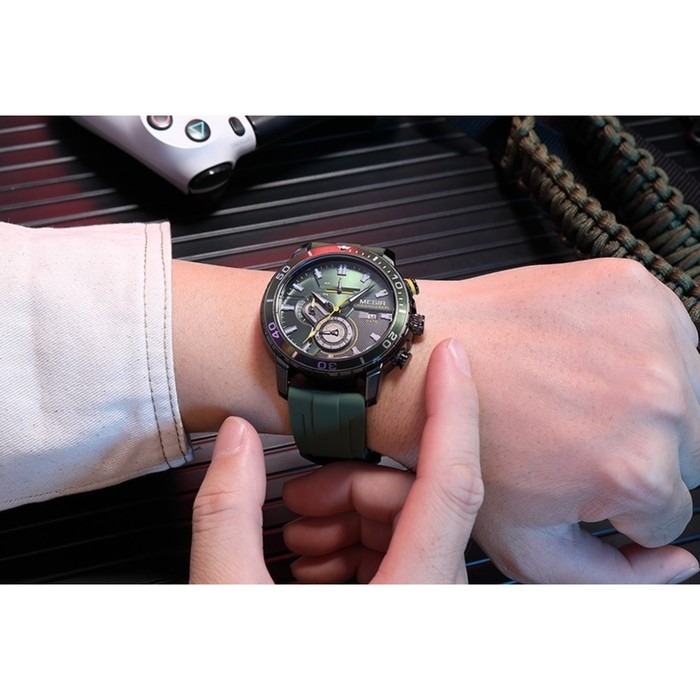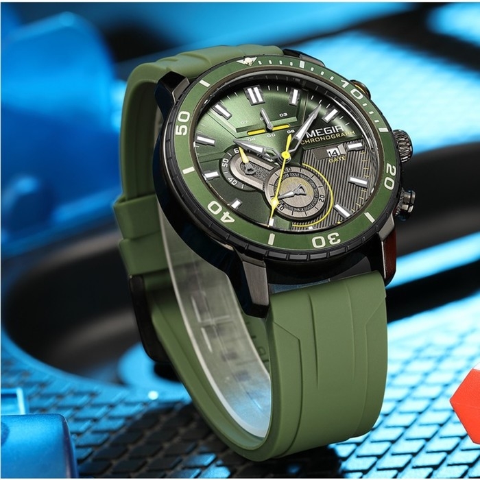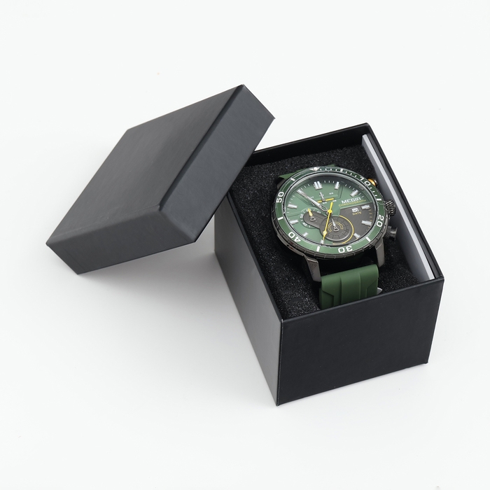 Часы наручные мужские, d-4.6 см, с хронографом, 3 АТМ, светящиеся, зеленые