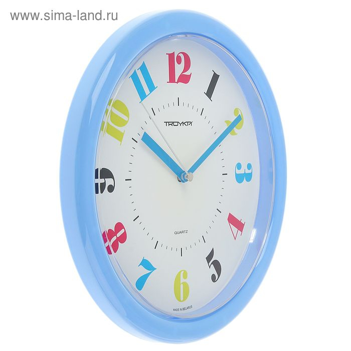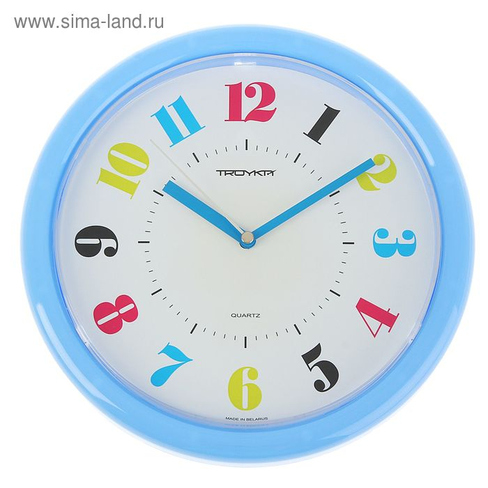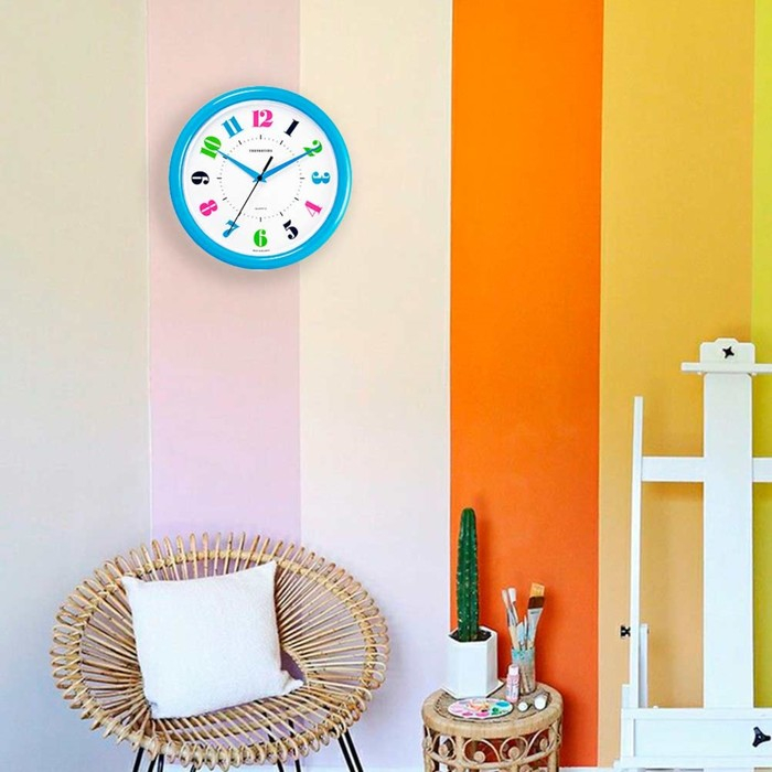 Часы настенные "Цветные цифры", дискретный ход, d-24 см, голубой обод