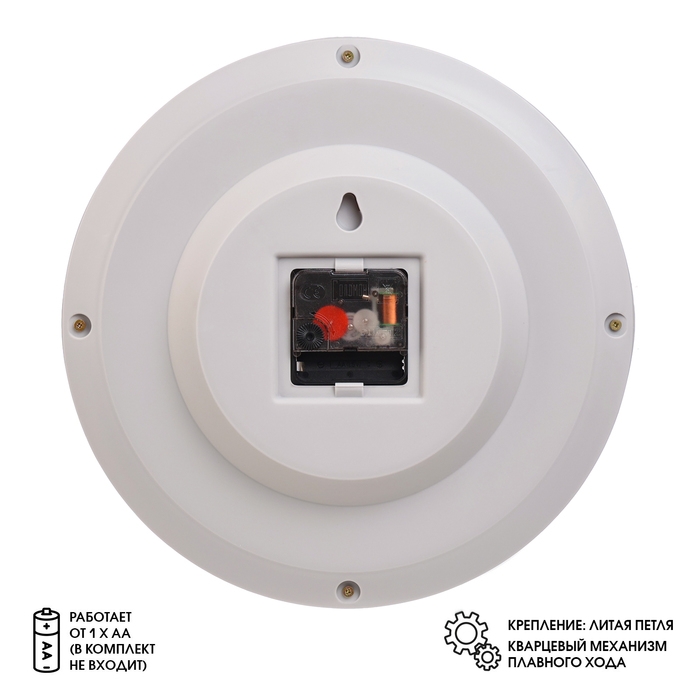 Круглые настенные часы с бесшумным кварцевым механизмом станут отличным украшением детской комнаты. Общий диаметр часов 28 см, большие четкие цифры, диаметр циферблата 24 см. Крепление-литая петля. Циферблат защищён прочным минеральным стеклом. Кварцевый механизм имеет плавный ход и работает от одной батарейки типа АА. Батарейки в комплект не входят.
