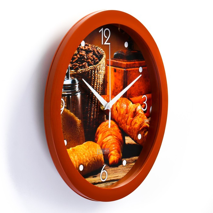 Часы настенные, d-28 см, кухонные, "Круассан с кофе", бесшумные