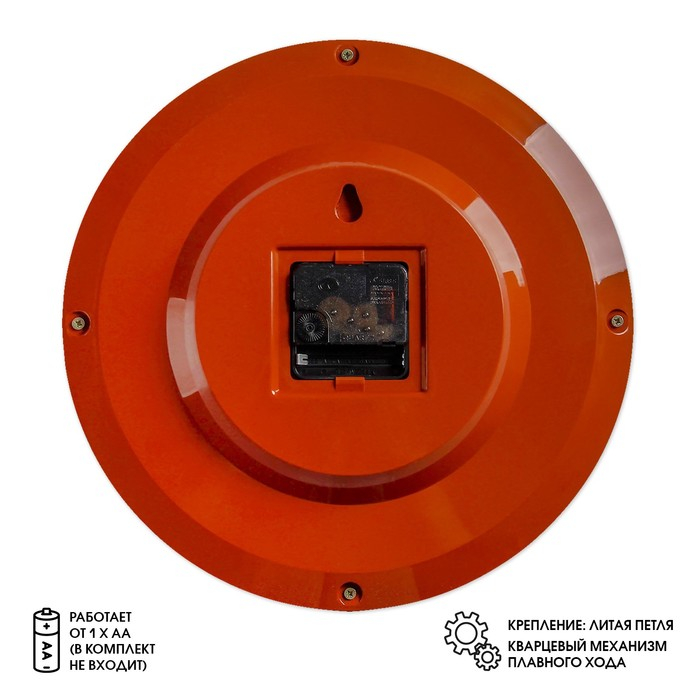 Круглые настенные часы с бесшумным кварцевым механизмом станут отличным украшением детской комнаты. Общий диаметр часов 28 см, большие четкие цифры, диаметр циферблата 24 см. Крепление-литая петля. Циферблат защищён прочным минеральным стеклом. Кварцевый механизм имеет плавный ход и работает от одной батарейки типа АА. Батарейки в комплект не входят.