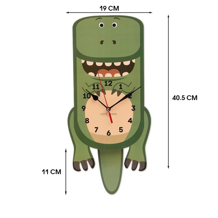 Часы настенные детские "Динозаврик", бесшумные, с маятником, 19х40 см, АА