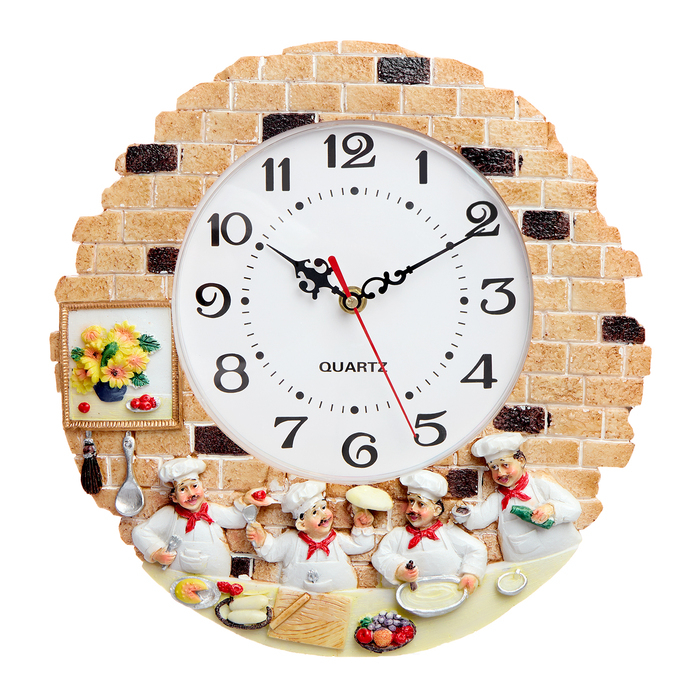 Часы настенные, для кухни "Повара", бесшумные, d-17 см, 30.5 х 30 см