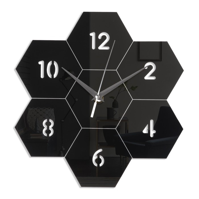 Часы настенные интерьерные, 3d "Соты", бесшумные, наклейка, большие, 27 х 26 см