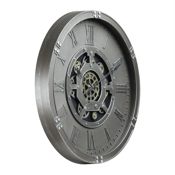 Настенные часы с движущимся мехнизмом. Особенностью этих часов является открытый механизм, благодаря которому вы сможете наблюдать за работой шестерёнок. Это создаёт атмосферу старины и делает часы настоящим произведением искусства. Настенные часы - это не только функциональный предмет интерьера, но и стильный аксессуар, который может подчеркнуть дизайн помещения. Они помогают следить за временем, соблюдать распорядок дня и организовывать свою деятельность. Кроме того, настенные часы могут быть важным элементом декора, который придает комнате завершенный вид. Они могут стать ярким акцентом в интерьере или, наоборот, гармонично вписаться в общий стиль помещения. Часы Лофт - это воплощение стиля и качества, созданное специально для тех, кто ценит изысканность и элегантность. Обладают высокой прочностью, долговечностью и устойчивостью к внешним воздействиям. Изготовленные из прочного пластика и стекла, они станут настоящим украшением и подчеркнут индивидуальность вашего вкуса. Диаметр часов составляет 60 см, что позволяет им стать изюминкой в любой комнате. Стрелки выполнены в едином стиле с фоном, что придает часам особый шарм и делают их еще более привлекательными. Кварцевый механизм обеспечивает точность хода и гарантирует, что часы будут идти без сбоев на протяжении многих лет. Часы бесшумны, вы не услышите раздражающих звуков из-за отсутствия шумовых эффектов. Питание осуществляется от батарейки типа АА (в комплект не входит). Настенное крепление - литая петля. Она соединяет заднюю стенку корпуса часов с механизмом крепления к стене, обеспечивая надежное сцепление с поверхностью стены.